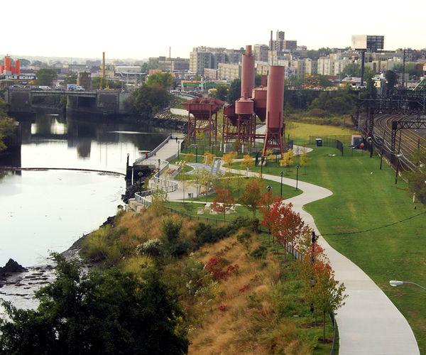 混凝土廠公園以前是個混凝土混合攪拌廠,位于西海岸布朗士河的南邊。公園四周是一些大型橋,被美國鐵路線路從中切斷與大陸分離。社區在改造區的中心區域,附有象棋桌、美麗的海濱區、游艇以及繁忙的自行車道——是休閑周末的必備區。