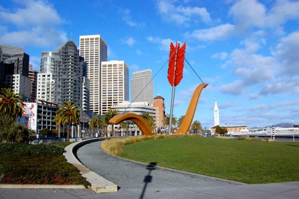 里肯公園位于海灣大橋的下面,由于克拉斯?歐登伯格和庫斯杰?范?布魯根在中心設計的大型弓箭雕塑,使它成為著名的公園。由于過去用于工業和商業,讓海濱地區受到了低程度的污染。改造之后,公園能讓游客看到舊金山的一些標志性建筑,例如舊金山灣、海灣大橋,還能一覽奧克蘭的風景。開放的綠色空間、圍墻座位以及周圍的繁忙區域,都體現出公園沒必要有多大面積來獲得影響力。第8個. 加利福尼亞布拉格堡的玻璃海灘.