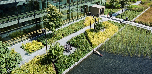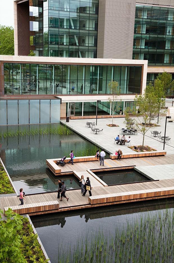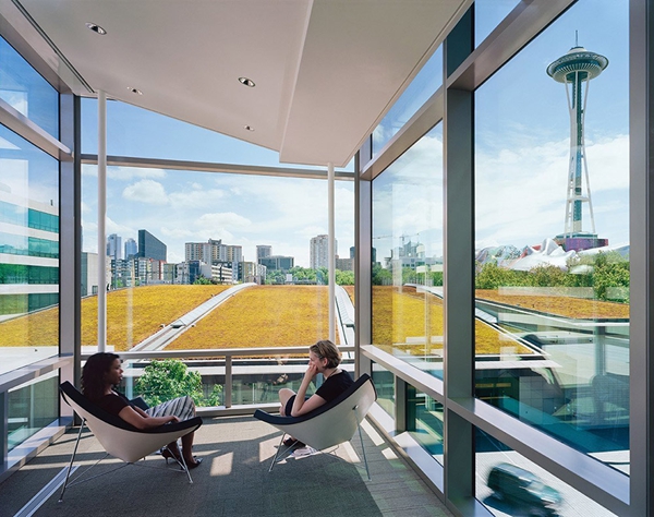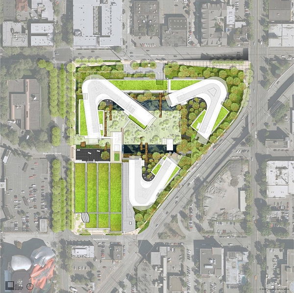 基金會(huì)園區(qū)的建設(shè)將西雅圖中心受污染的12英畝停車場改造成為全球合作和地方參與的生態(tài)環(huán)境和社會(huì)可持續(xù)發(fā)展的樞紐。景觀建筑師將其設(shè)計(jì)為可以聯(lián)系員工們的區(qū)域,使周邊社區(qū)再生,滿足基金會(huì)扎根本土的全球性使命的原則。