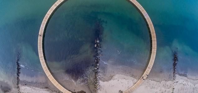Gj?de & Povlsgaard Arkitekter事務所一座名叫“無限之橋”的海邊景觀建筑。圓形結構的橋梁將會隨著潮汐的漲落而在海平面上起伏。那些行走在“無限之橋”的游客們將會隨著橋梁的起伏而起伏,且在橋上可以從各個角度欣賞海洋的美景,欣賞到從前難以觀看到的景色,無論是從高度還是角度上都給人一種極致到無法想象的享受。