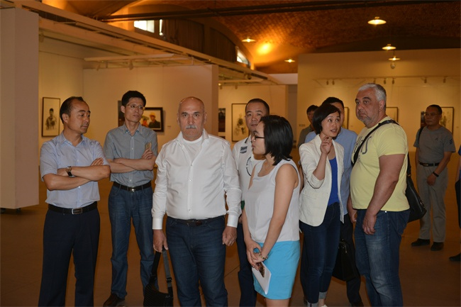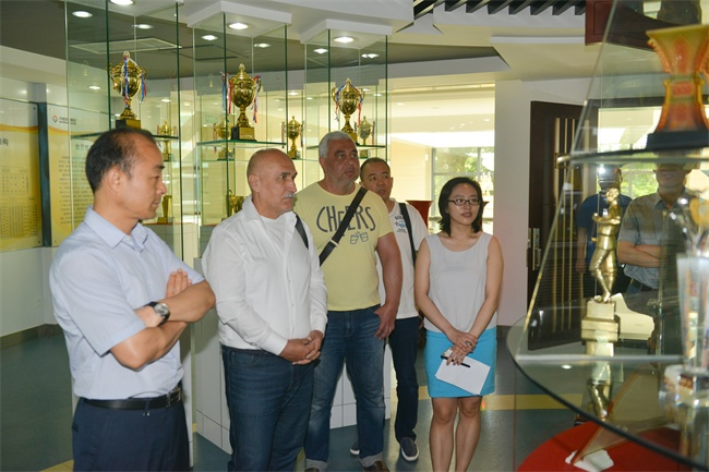 會前,外國客人參觀了集團榮譽室和大成美術館。在參觀了美術館畫展、扇面館、紫砂館、陶瓷館、陳列的古代文物及館體建筑之后,對中國文化產生了濃厚興趣,對集團高品位的企業文化表示高度贊賞。