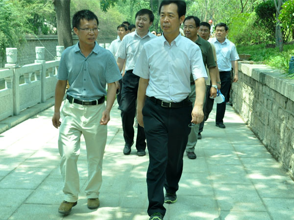 5月30日,濟南市園林局局長韓永軍在園林公司經理劉傳濤及園林公司相關人員的陪同下,蒞臨北護城河綠化景觀改造提升工程施工現場并予以指導。
