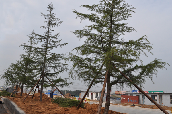 此段全長約300米,共栽植雪松35顆。種植完成后,項目部積極組織人員對苗木進行疏枝修剪、截口涂抹保護劑、固定支撐和灌溉。種植工作進展順利,項目部科學策劃,合理制定施工計劃,各個施工環節嚴格把關,為后期苗木種植奠定基礎,同時項目部堅持樣板引路,通過樣板尋求工作參數,為工程后期成本控制提供技術支持。