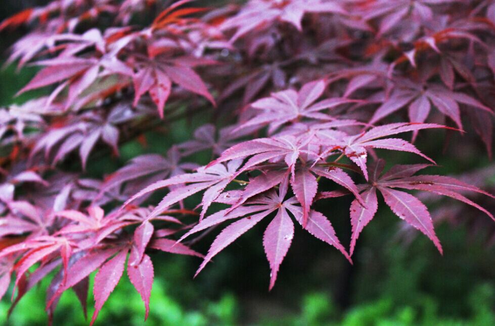紅楓又名紅葉羽毛楓,為槭樹科雞爪槭的變種,是落葉小喬木,樹高達9米。它枝條光滑細長,單葉5—7裂,掌狀互生,葉片長橢圓形至披針形,葉緣有重鋸齒,幼枝、葉柄、花柄都為紅色。花紫色,傘狀花序頂生,花期5月。翅果無毛,10月成熟。