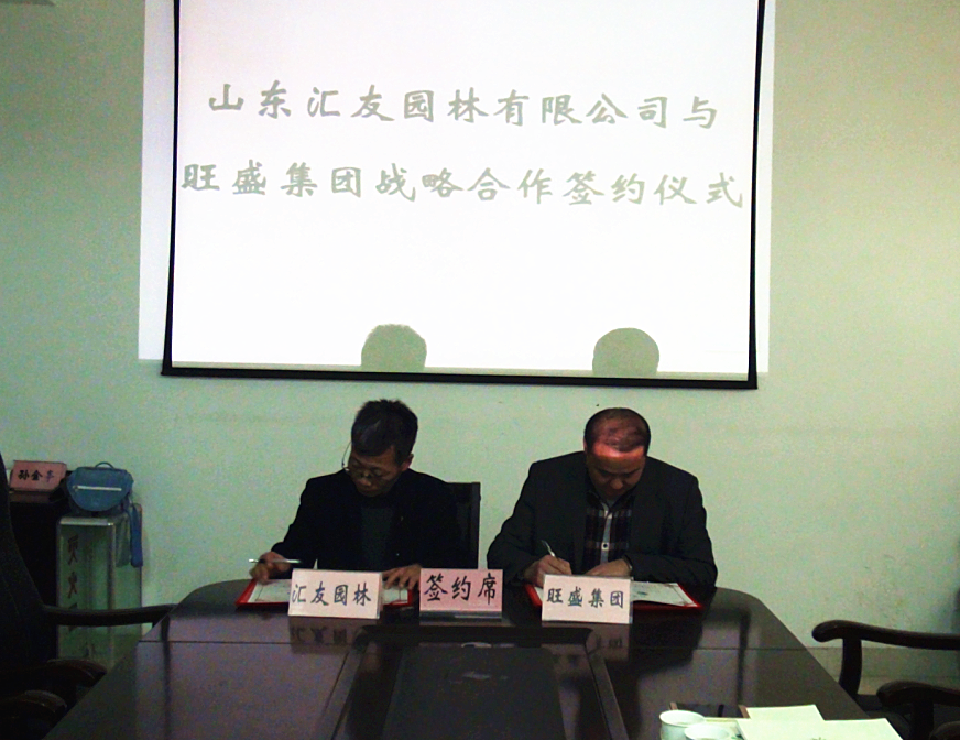 2015年12月12日上午,山東匯友園林有限公司與山東旺盛園林股份有限公司在匯友園林基地舉行戰略合作簽約儀式。