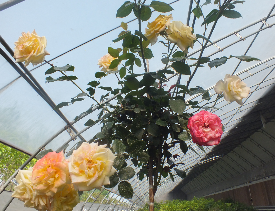 由匯友市政園林集團自行繁殖的光譜月季在溫室棚里盡情的綻放自己。溫室的溫度讓月季花搶先爭艷,五顏六色的月季花給大